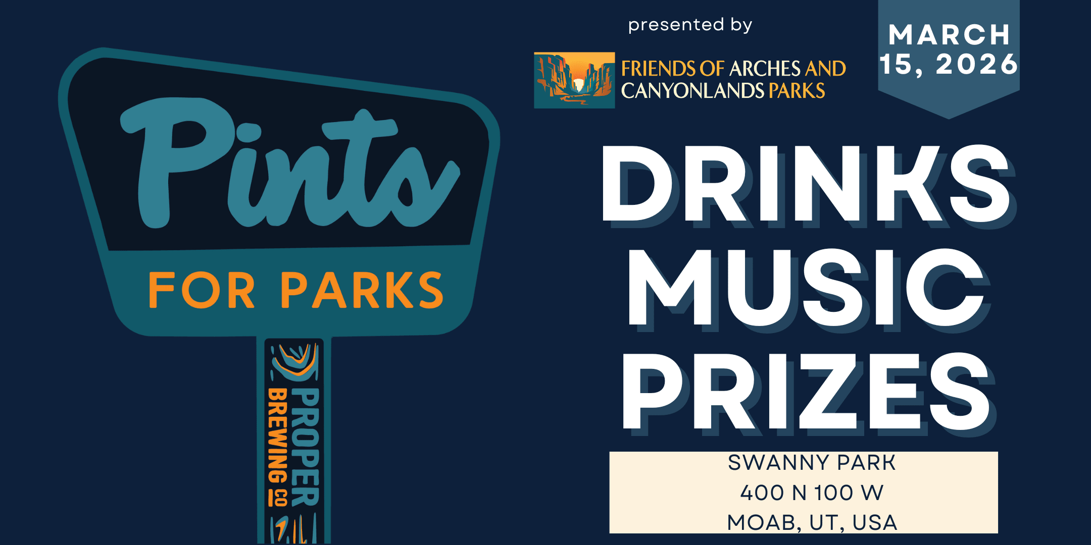 This is a fun-filled afternoon in the heart of Moab, UT. Indulge in some delicious brews and music while supporting our National Parks. This in-person event is a great opportunity to meet fellow National Park lovers while enjoying and the fun atmosphere of Moab. This laid-back fundraiser will showcase the work Friends of Arches and Canyonlands does to support our amazing backyard National Parks. So grab your friends and come on down to Swanny Park in Moab. Let's raise a glass and toast to our beautiful parks! We will have heaters and covered tents with plenty of space to sit, stand, mingle, and move!
